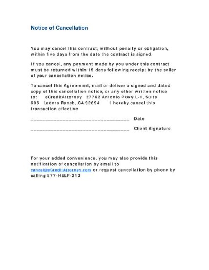 Many states, like California, grant consumers a statutory “cooling off” period, typically three to five days, during which a consumer can cancel a contract for any reason by sending the seller a written cancellation notice.