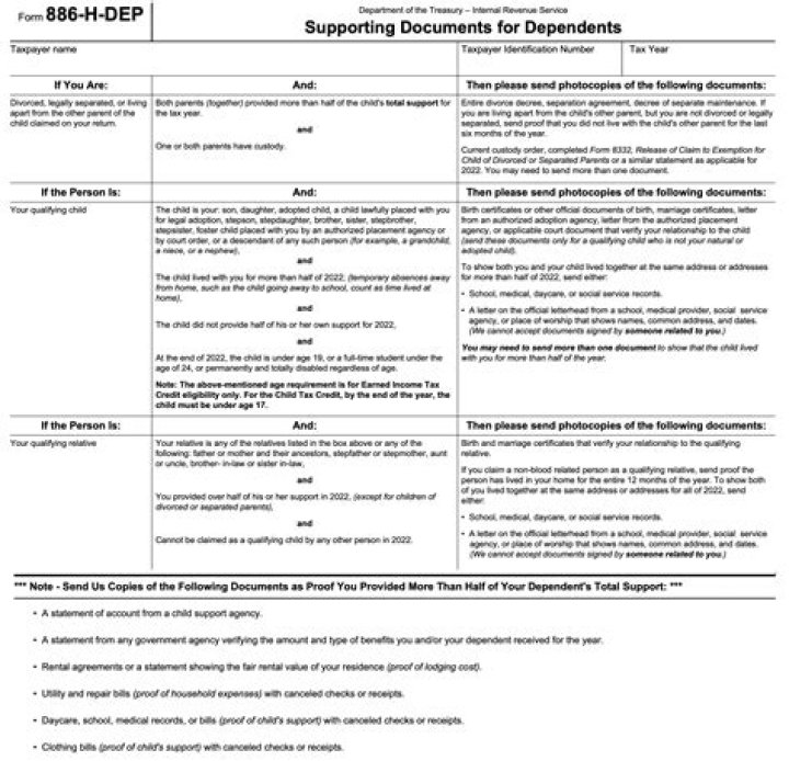 The dependent’s birth certificate, and if needed, the birth and marriage certificates of any individuals, including yourself, that prove the dependent is related to you. For an adopted dependent, send an adoption decree or proof the child was lawfully placed with you or someone related to you for legal adoption.