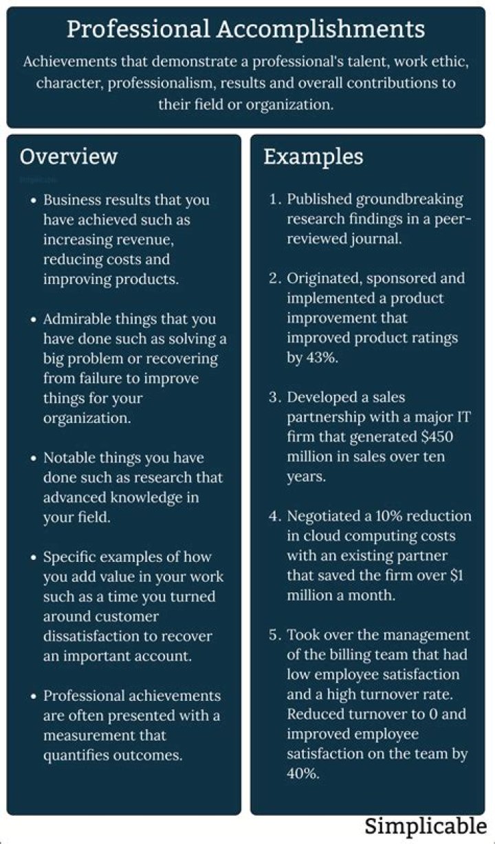 What are some examples of accomplishments on a resume?