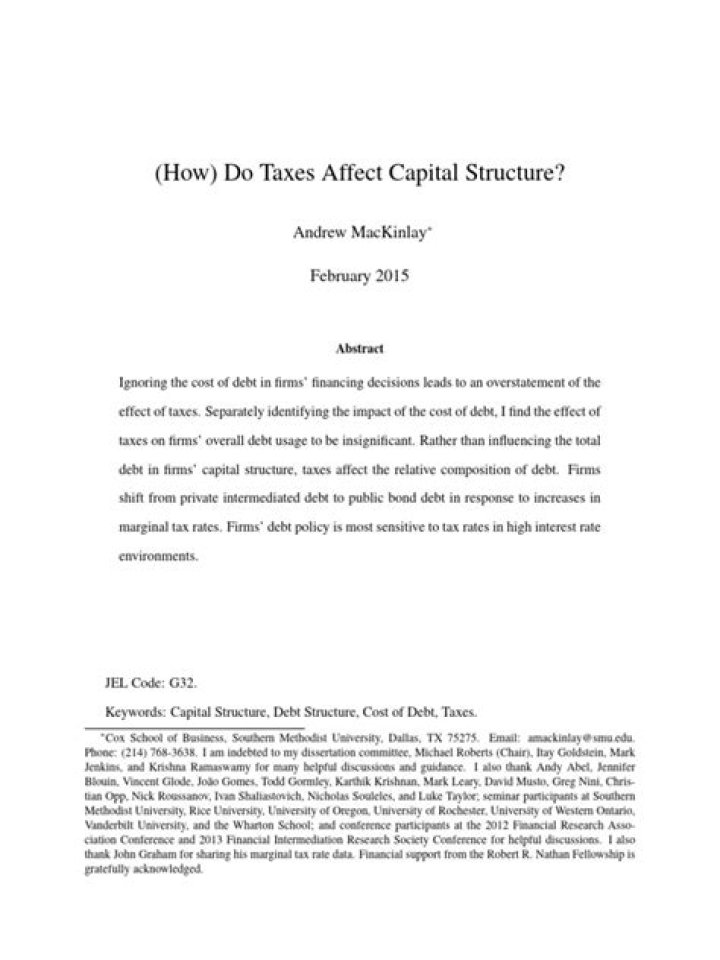 Taxes affect the use of interest-paying debt. Increases in corporate tax rates lead to increases in leverage; increases in personal taxes on interest income decrease leverage; and increases in personal taxes on dividend income increase leverage.