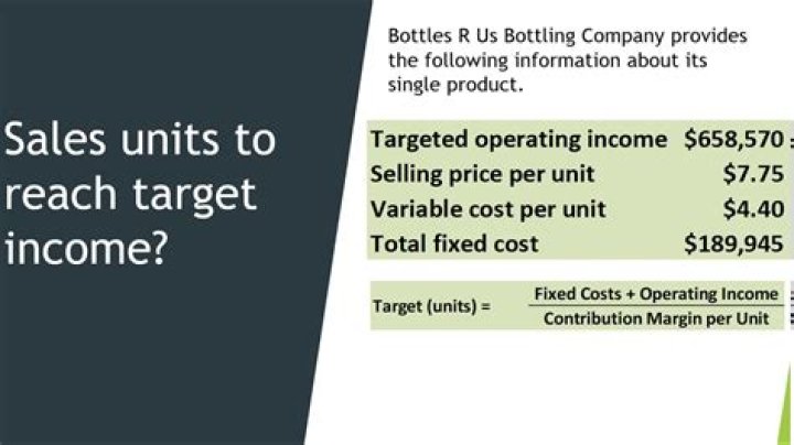 Derivation of Target Income Multiply the expected number of units to be sold by their expected contribution margin to arrive at the total contribution margin for the period. Subtract the total amount of expected fixed cost for the period. The result is the target income level.