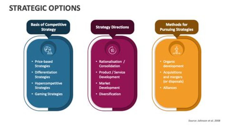 Strategic alternatives are strategies that a business develops to set the direction, for which human and material resources will be applied, for a greater chance of achieving selected goals, notes iEduNote.
