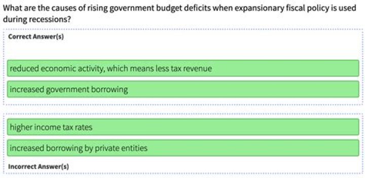 What are the causes of rising government budget deficits when expansionary fiscal policy is used during recessions? The government raises the top marginal income tax rate.