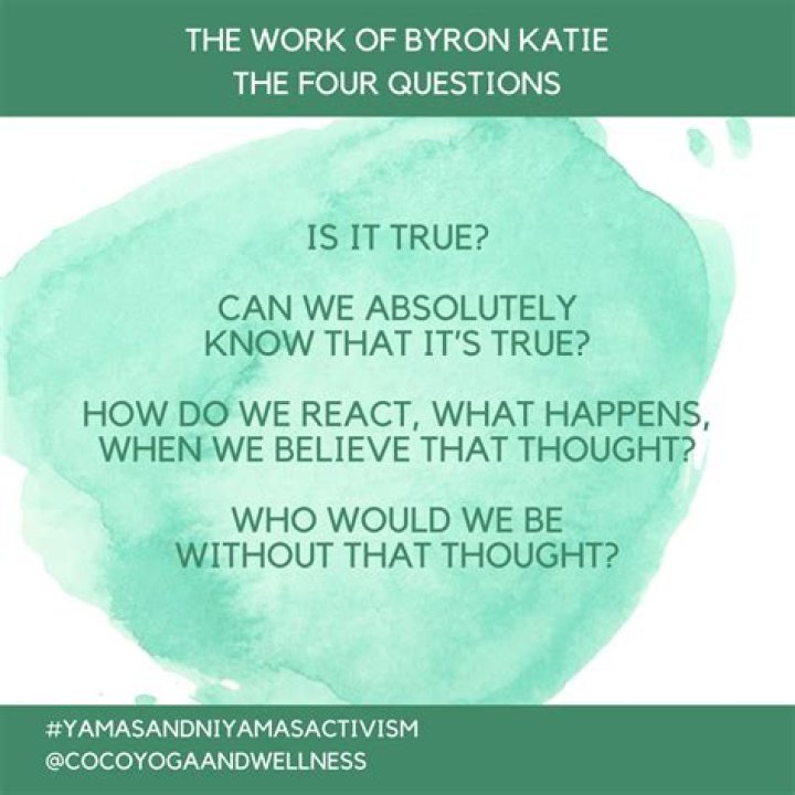 She realized a simple truth: when she believed her thoughts, she suffered, and when she didn’t, she was happy….Four Liberating Questions