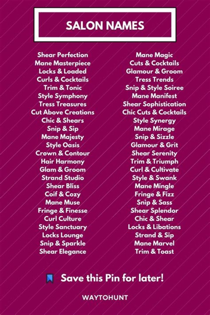 Brainstorming Names for Your Hair Salon Shortcuts On Edge The Makeover Place Scissors N’ Razors Masterpieces Hair Salon Big Hair Beauty Salon Under the Dryer The Color Palette Hollywood Cuts Color Me Crazy Sweet Pixie Salon Holy Snip Bed Head Color, Cut, and More Blunt Cut