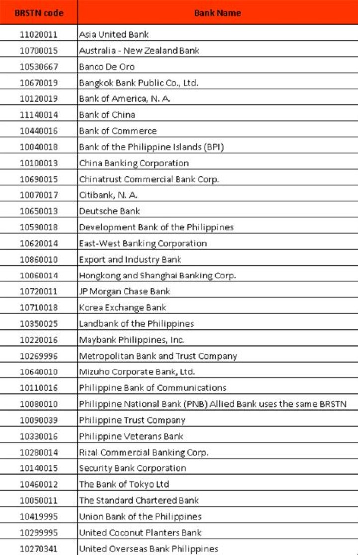 A BRSTN code is the Bank Routing Symbol Transit Number, and is the popular term for a Bank Identifier Code (BIC) used among banks in the Philippines to transfer funds. It is a nine-digit code identifying your country, city, and bank. Subsidiary banks all use this same head office BRSTN code.